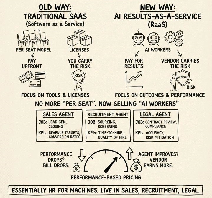 Đây không đơn thuần là phần mềm, mà là lao động được ký hợp đồng. Nếu hiệu suất của AI agent giảm sút, hóa đơn sẽ tự động giảm theo. Ngược lại, nếu hiệu suất cải thiện, nhà cung cấp sẽ kiếm được nhiều tiền hơn.