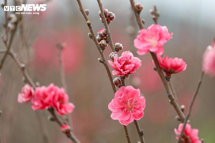 Sắc hồng, sắc đỏ đặc trưng của hoa đào Nhật Tân góp phần tô điểm không khí Tết thêm rộn ràng, tươi mới.