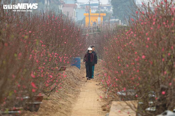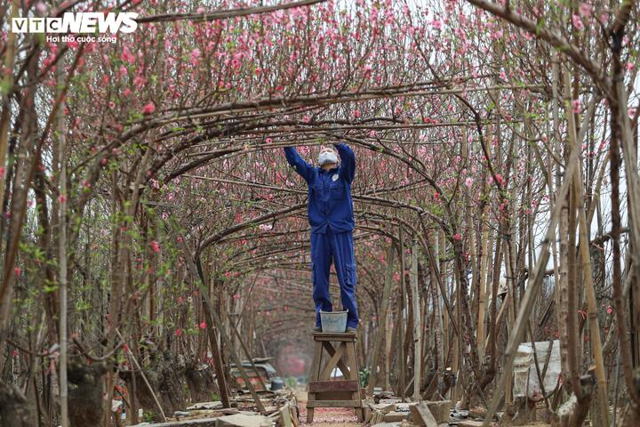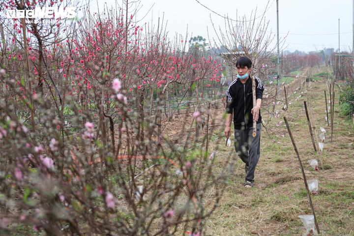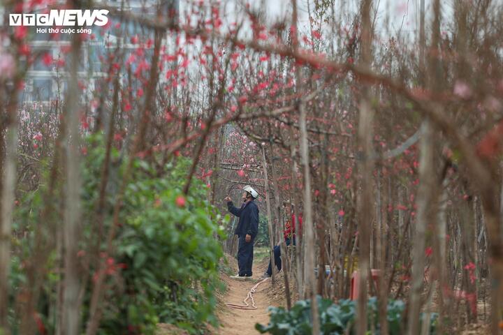 Theo chia sẻ của các nhà vườn, thời tiết năm qua có nhiều diễn biến bất thường, nền nhiệt cao hơn trung bình nhiều năm khiến một số diện tích đào nguy cơ nở sớm. Trước tình hình đó, người trồng phải theo dõi sát sao diễn biến thời tiết, điều chỉnh kỹ thuật chăm sóc từng ngày để đảm bảo hoa nở đúng dịp Tết.