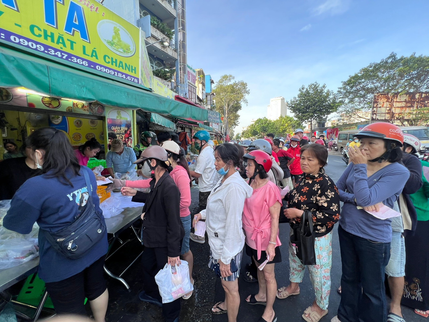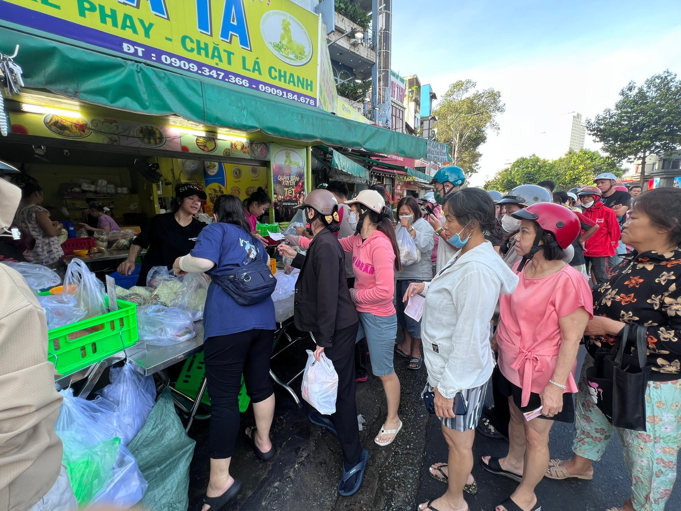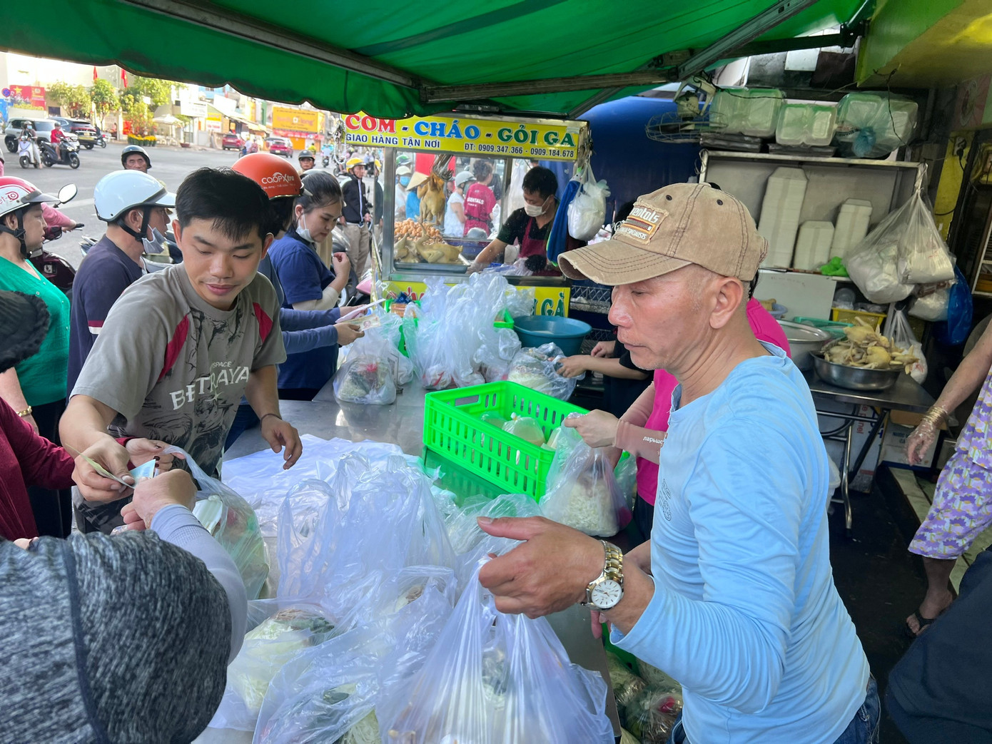 Trong khi đó, cửa hàng vịt quay trên đường Phan Văn Trị (phường An Đông) cũng đông kín khách đến xếp hàng.