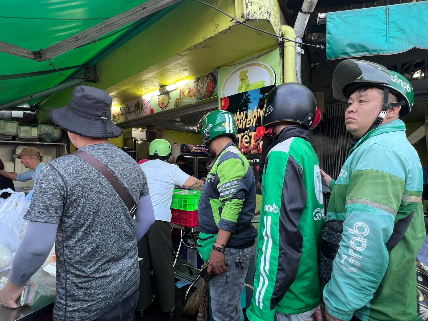 Nhiều người đặt shipper nhận hàng hộ. Một shipper cho biết, từ 5 giờ sáng, ông đã đến đây nhận gà thay khách và các đơn hàng nhờ nhận gà luộc tại cửa hàng này "nổ" liên tục. "Tôi phải chờ khoảng 15 phút mới đến lượt. Tôi nhận được rất nhiều đơn hàng đặt mua gà cúng trong sáng nay" - một shipper chia sẻ.